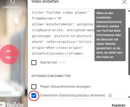 Wichtig: Beim Einbinden eines YouTube-Videos per iframe werden bereits beim Laden der Seite personenbezogene Daten (z. B. IP-Adresse) an Google/YouTube übertragen. Nach aktueller Rechtslage (DSGVO, TTDSG) ist dies nur nach aktiver Einwilligung der Nutzer zulässig.